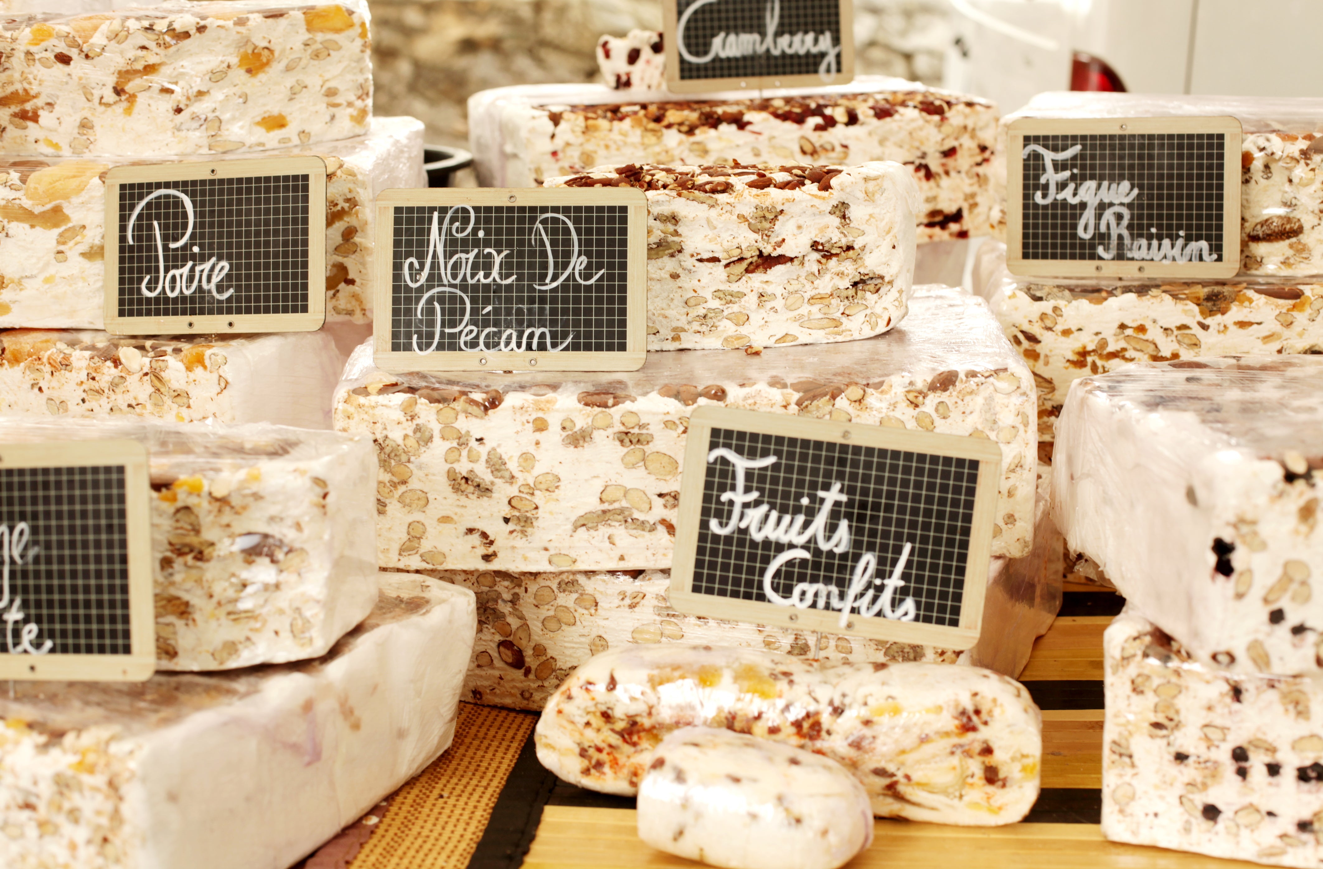 A wrong turn took us to Montélimar - nougat capital of the world - where nougat was piled high in every shop window.